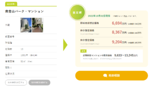 50㎡の専有面積の部屋で即時売却想定価格でも6,694万円(㎡当たり134万円)と査定されました。現在の売買相場より10%以上も高い査定結果が出ています。
